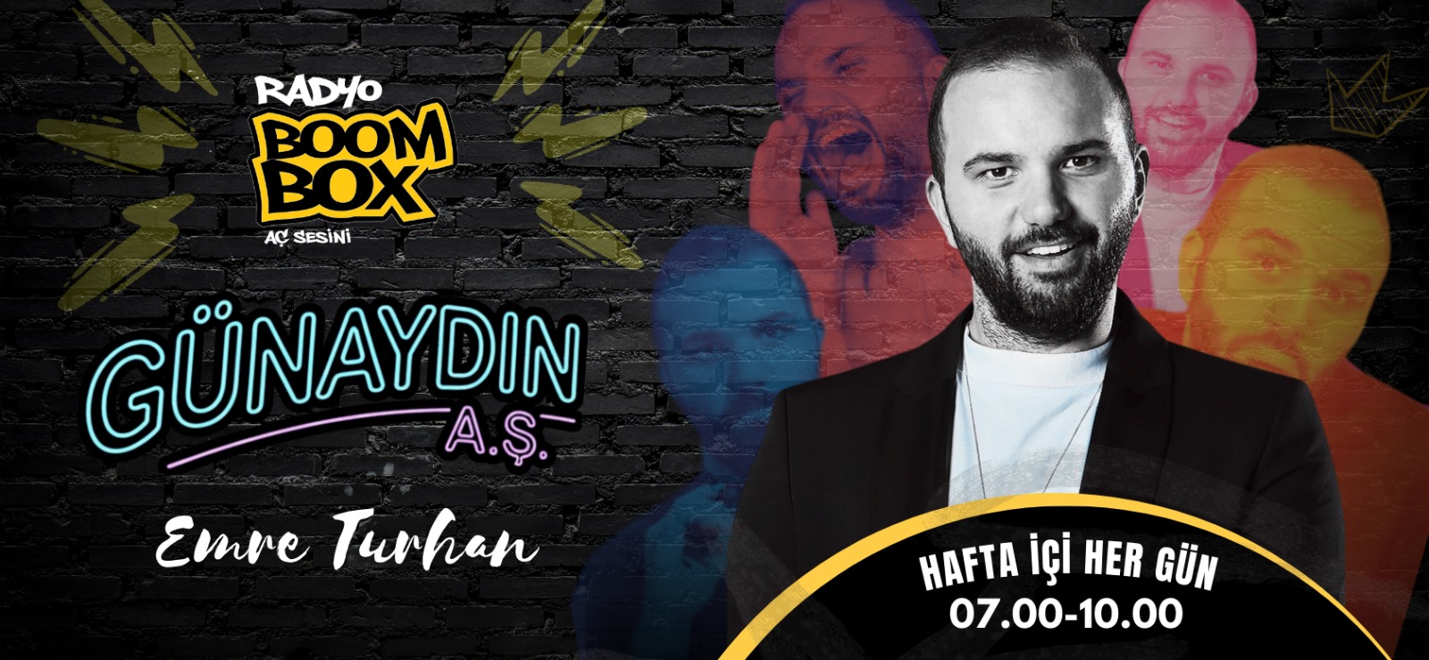 Emre Turhan'la Günaydın A.Ş., artık her gün 07.00 – 10.00 saatleri arasında Radyo Boombox'ta canlı olarak yayınlanıyor.